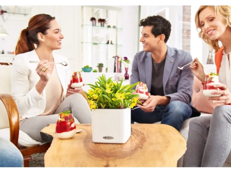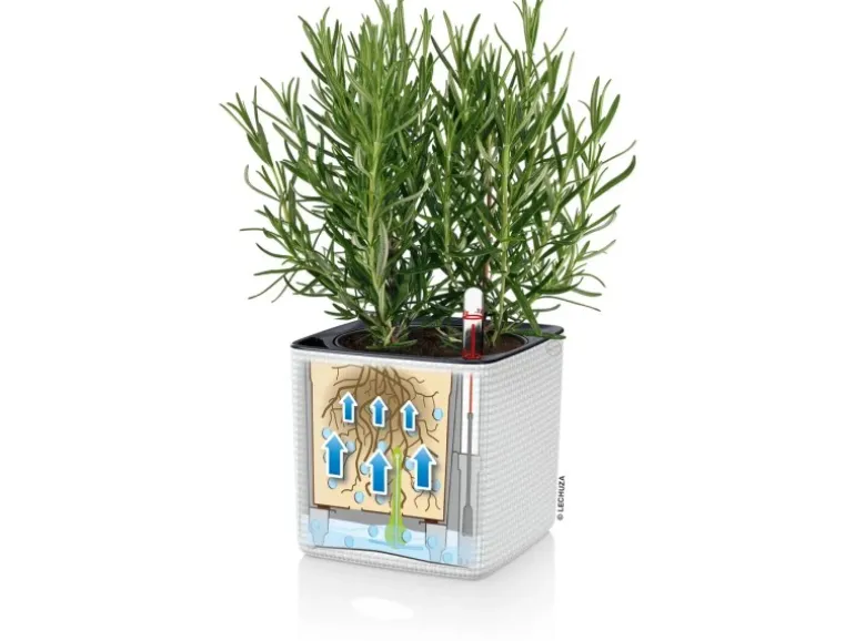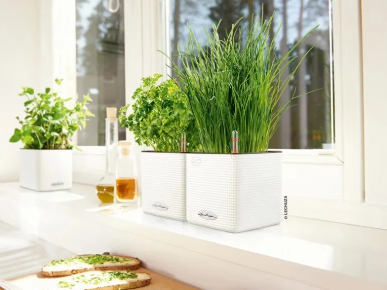 Das Pflanzgefäß Cube Color von Lechuza® besticht mit einem Stick-Bewässerung-Set, der Ihre Kräuter im Kräutertopf zuverlässig mit Feuchtigkeit versorgt. Dafür müssen die Kräuter nicht einmal umgetopft werden, denn der Stick wird einfach von unten in den Kräutertopf gesteckt, dieser dann in den Cube Color gesetzt und gegossen. Somit wachsen die Kräuter das ganze Jahr über problemlos auf der Fensterbank und der Vorrat an frischen Kräutern geht nicht zur Neige.
