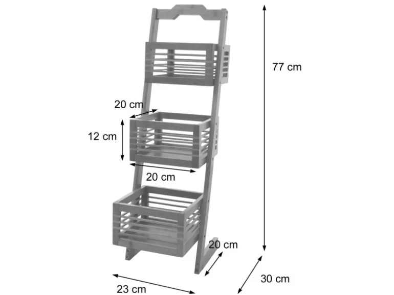 – Drei robuste Körbe sorgen dafür, dass alles griffbereit und ordentlich bleibt. Jeder Korb hat eine Belastbarkeit von bis zu 5 kg. Dieses Ablageregal ist nicht nur funktional, sondern fügt sich auch harmonisch in jeden Einrichtungsstil ein.