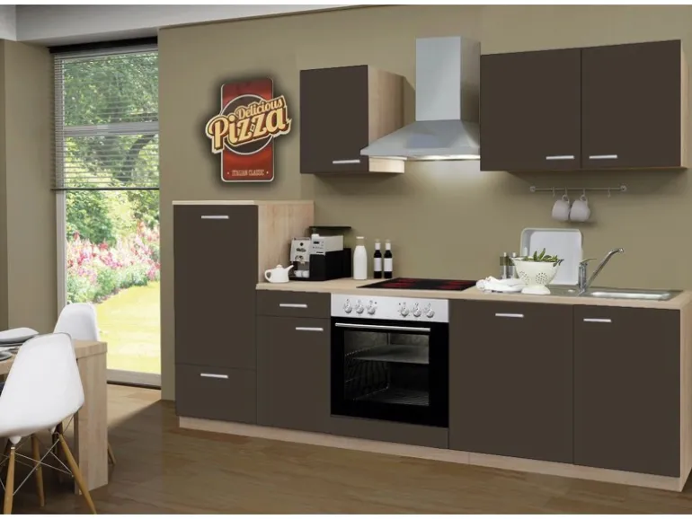 Moderne Küche in eleganter Optik mit Fronten in Lava und Korpus aus Sonoma-Eiche Nachbildung