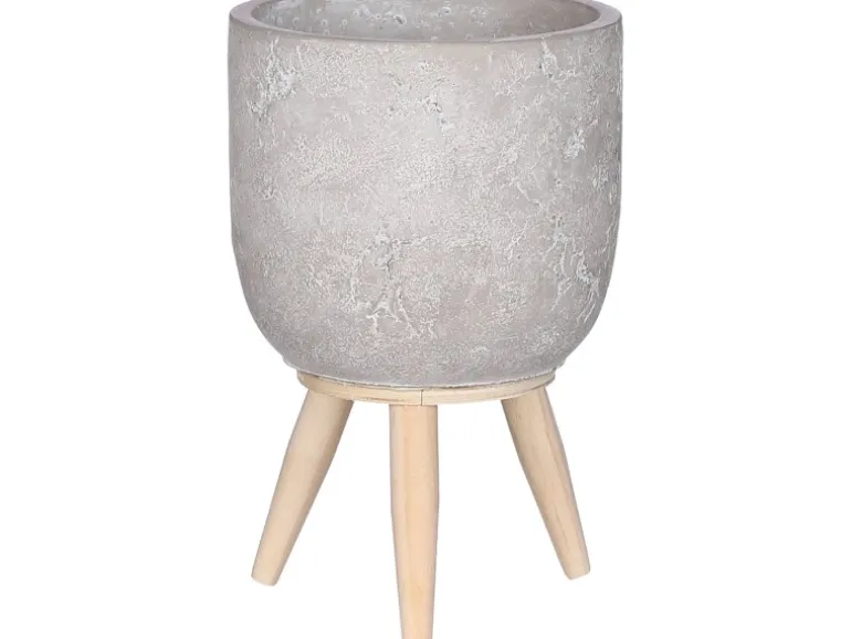 Der Mica Decorations Topf Jimmy Ø 12,5 cm x 19 cm Hellgrau eignet sich sehr gut zum Blumenarrangement oder zum Füllen mit dekorativem Material. Der Topf in Betonoptik steht auf Holzfüßen und wird so zu einem echten Hingucker. Der Topf Jimmy punktet mit seiner zeitlosen Form.