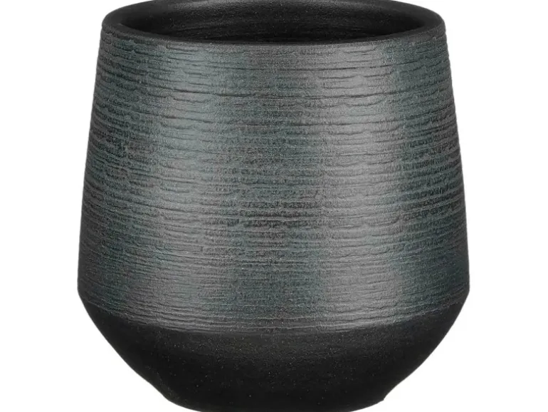 Dieser Übertopf für den Innenbereich präsentiert sich in einem eleganten Schwarz und verleiht jedem Raum eine harmonische Note. Seine Maße von Ø 16 cm x 15 cm bieten ausreichend Platz für Ihre Lieblingspflanzen und setzen sie gekonnt in Szene.