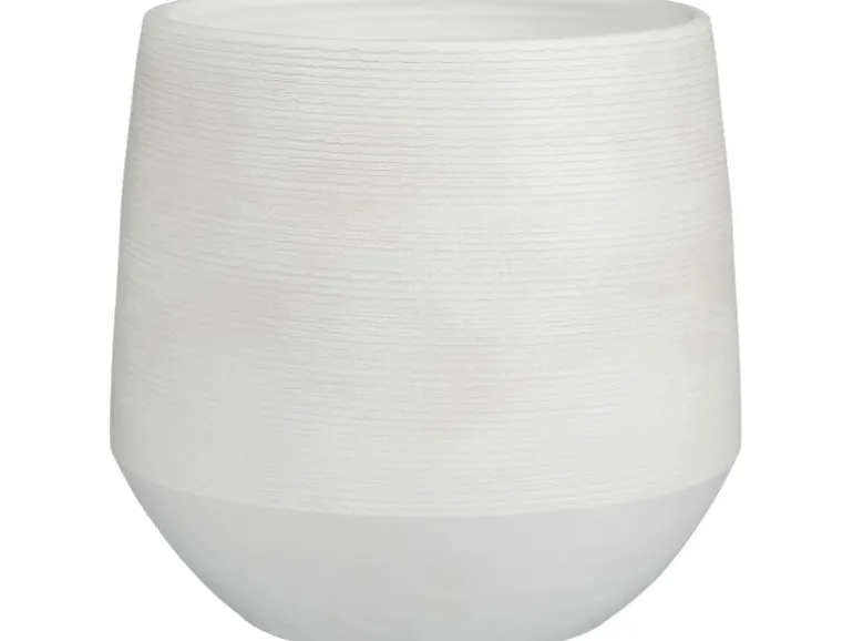 Dieser Übertopf für den Innenbereich präsentiert sich in einem eleganten Offwhite und verleiht jedem Raum eine harmonische Note. Seine Maße von Ø 30 cm x 28 cm bieten ausreichend Platz für Ihre Lieblingspflanzen und setzen sie gekonnt in Szene.