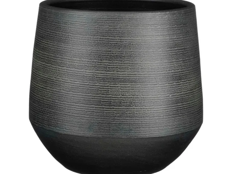 Dieser Übertopf für den Innenbereich präsentiert sich in einem eleganten Schwarz und verleiht jedem Raum eine harmonische Note. Seine Maße von Ø 30 cm x 28 cm bieten ausreichend Platz für Ihre Lieblingspflanzen und setzen sie gekonnt in Szene.