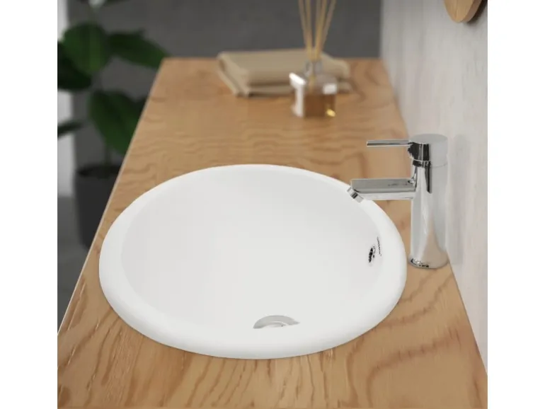 Dieses Modell ist vor Allem als Einbau Waschbecken geeignet und verfügt über die Standardmaße für Ablaufgarnituren. Die Standard-Anschlüsse für Armatur und Ablauf ermöglichen es dir, dein Waschbecken nach deiner Wahl auszustatten und ihm so deinen ganz eigenen Stil zu verleihen.