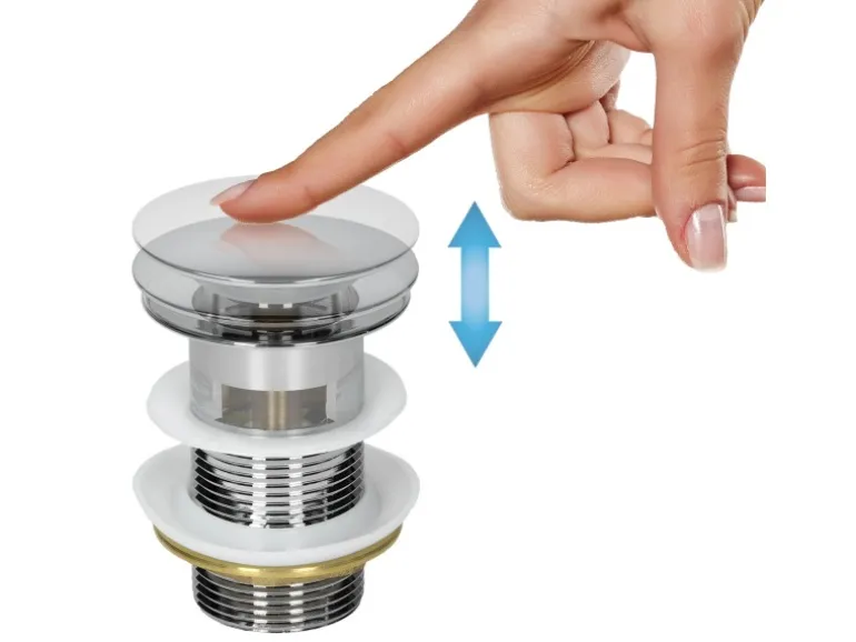 Das Ablaufventil von ML-Design kannst du mit nur einem Fingerdruck auf die Abdeckung öffnen und schließen. Diese sogenannte Push-Open-Technologie ist entwickelt worden um das Waschbecken möglich schnell und einfach verdichten zu können.