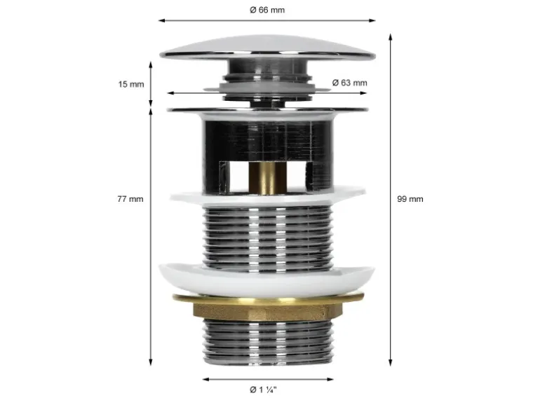 Die Ablaufgarnitur lässt sich ganz einfach in jedes Waschbecken einsetzen und ist sofort einsatzbereit. Die Einheitsgröße sorgt dafür, dass du die Ablaufgarnitur ganz einfach mit einem Waschbecken deiner Wahl kombinieren kannst. Waschbecken erhältst du ebenfalls bei uns im Online-Shop. Der Stopfen lässt sich einfach Herausdrehen und macht die Reinigung ganz unkompliziert.