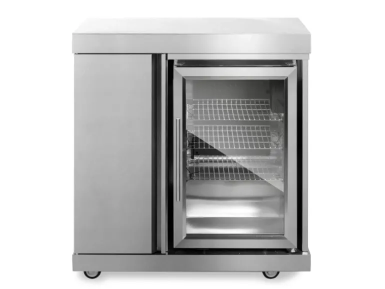 Freistehendes Modul mit Kühlschrank und Aufbewahrungsschrank komplett aus Edelstahl. Der Kühlschrank verfügt über Kompressorkühlung und bietet eine Kühlleistung von 3-16°C. Darüber hinaus ist das Modul mit einem Aufbewahrungsschrank für trockene Lebensmittel ausgestattet. Ideal für Ihre Outdoorküche!