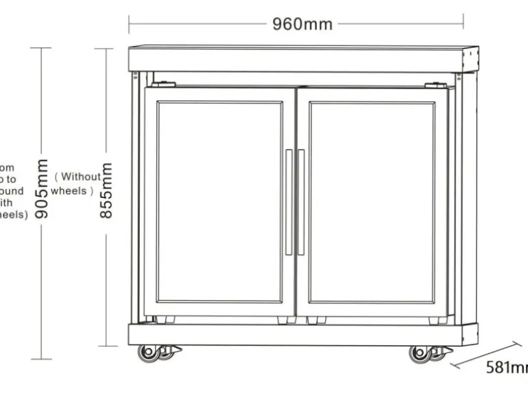 – Masse: (Breite x Höhe x Tiefe) 96 x 85,5 x 58 cm