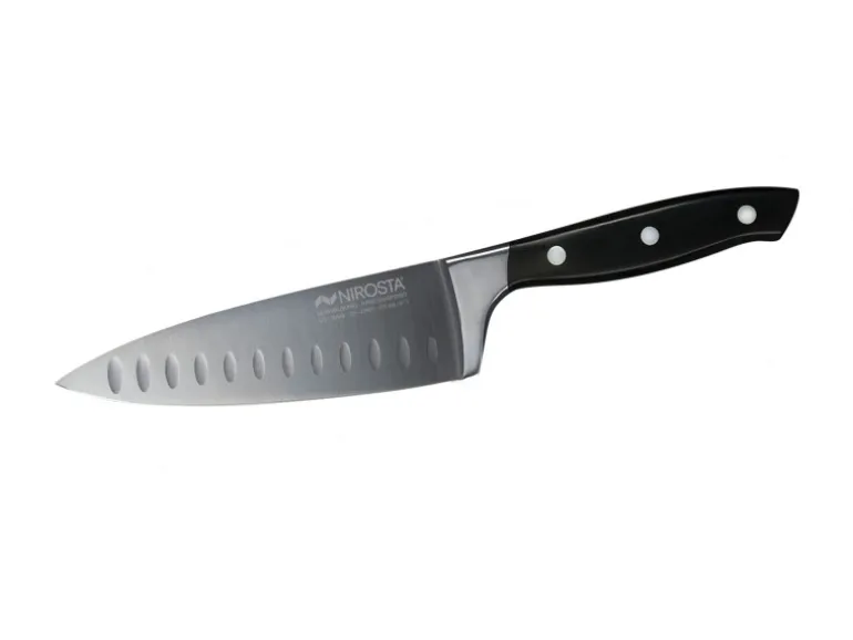 Das hochwertige kleine Edelstahl-Kochmesser von Nirosta eignet sich für das Schneiden, Hacken, Filetieren und Zerlegen von Lebensmitteln aller Art. Es überzeugt mit sehr guter Schneidleistung und langer Schnitthaltigkeit. Es besitzt einen präzisen Handabzug, dreifach genieteten Griff mit Fingerschutz und hat eine Gesamtlänge von 29 cm.