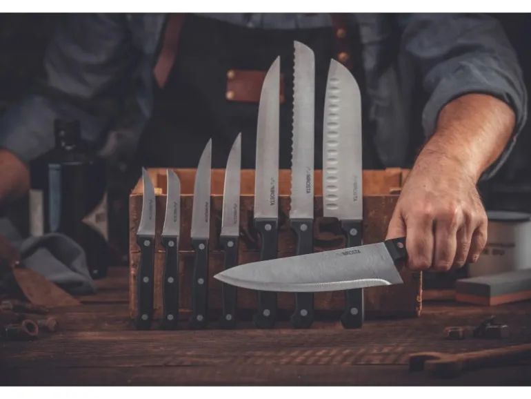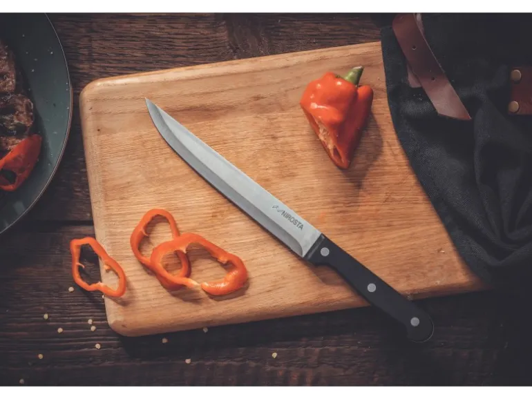Das Küchenmesser von Nirosta ist ideal geeignet für verschiedenste Schneidearbeiten. Das Messer hat eine aus Edelstahl gefertigte Klinge, die 18 cm lang ist. Der Griff des Messers besteht aus schwarzem Kunststoff. Nach dem Gebrauch kann das Küchenmesser in die Spülmaschine gegeben werden.