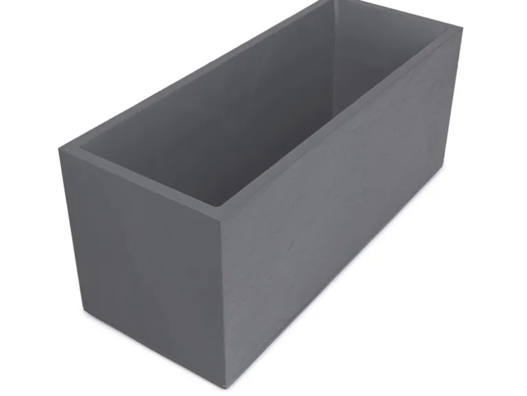 Der Pflanzkübel Vulkan 100 ist aus hochwertigem Kunststoff und wirklich ein besonders schöner Blumenkübel, der mit seinem klassischen Vulkan-Gestein-Design und seinen klaren Linien besticht. So passt er in jedes Ambiente. Er eignet sich hervorragend für moderne Arrangements, aber auch im Zusammenspiel mit anderen Stilen macht er eine gute Figur. Der Pflanzkübel Vulkan 100 hat ca. 98 Liter Pflanzvolumen und lässt sich besonders schön mit den verschiedensten Blumen bepflanzen, aber auch reduzierte Pflanzenarrangements wirken wundervoll in diesem Blumenkübel. Der Pflanzkübel Vulkan 100 wirkt schön auf der Terrasse oder dem Balkon und auch an einer exponierten Stelle im Garten verbreitet er seinen klassischen Charme. So lässt sich mit wenig Aufwand modernes Design in verschiedenste Arrangements einfügen. Durch die Größe von ca. 100 x 40 x 43 cm und seine ca. 98 Liter Pflanzvolumen ist der Pflanzkübel Vulkan 100 ideal geeignet für die verschiedensten Blumenzusammenstellungen. So haben Sie genügend Platz, um Ihre eigenen Vorstellungen zu verwirklichen und verschiedenste Arrangements auszuprobieren. Gleichzeitig ist der Pflanzkübel Vulkan 100 auch nicht zu groß. Der Pflanztopf besteht aus Kunststoff. Das bedeutet nicht nur, dass der Kübel mit ca. 8 kg Eigengewicht sehr leicht für seine Größe ist. Der Kunststoff ist auch UV-resistent und trotzt jedem Wetter. Für eine bessere Wärme- und Kälteisolierung wurde der Vulkan-Kübel doppelwändig gebaut. Außerdem besitzt er einen Wasserspeicher im Boden.