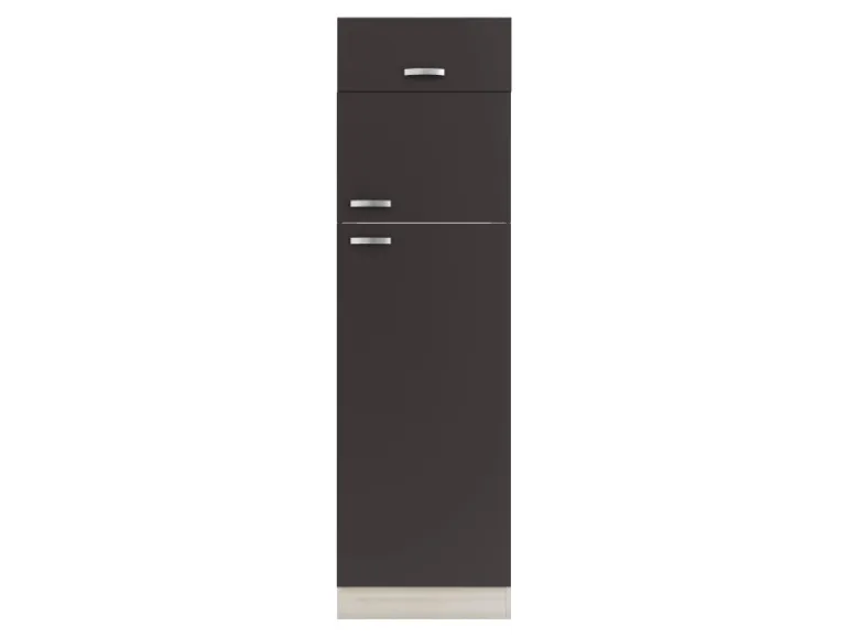 Die Serie Faro220 ist mit der Kombination aus Frontfarbe in Anthrazit und Korpus in Akazie Nachbildung perfekt abgestimmt. Die gebürsteten Metallgriffe runden den Look ab und machen Ihre Küche zu einem echten Hingucker.