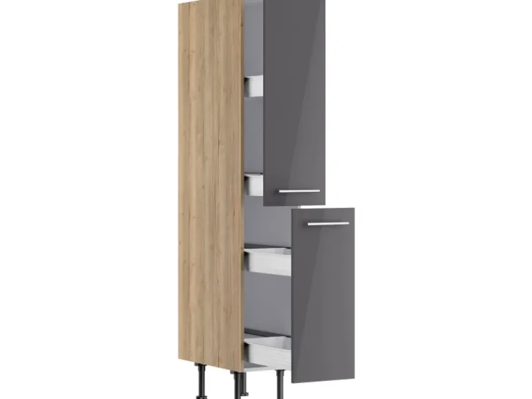 Durch diesen Midischrank erhalten Sie in Ihrer Küche auf 4 Ebenen reichlich zusätzlichen Stauraum, der bequem mit zwei Auszügen zu erreichen ist. Der Schrank gehört zu der Serie Jonte984 von OPTIkomfort und lässt sich mit weiteren Schränken dieser Serie hervorragend kombinieren. Dadurch ist ein individuelles Gestalten Ihrer Küche leichtgemacht.