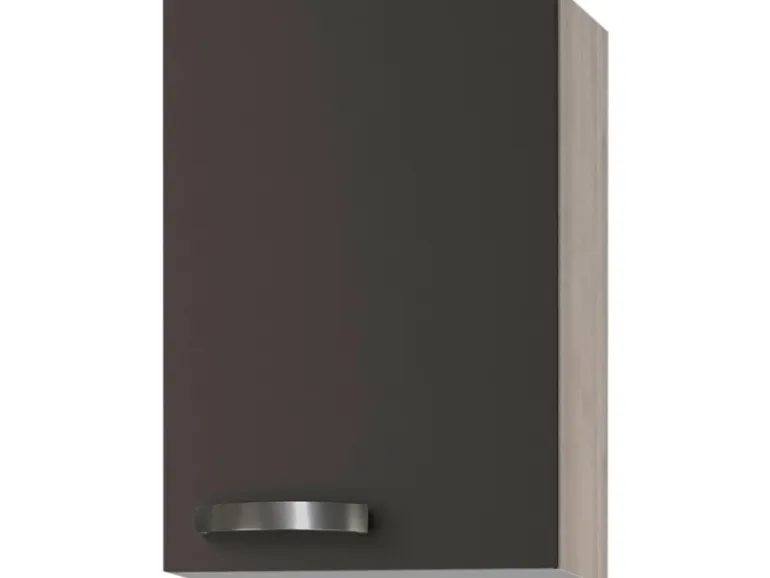 In Ihrer Küche werden die Schränke der Serie Faro220 durch die moderne Kombination von anthrazitfarbener Front und einem Korpus in Akazie Nachbildung zu einem echten Hingucker.