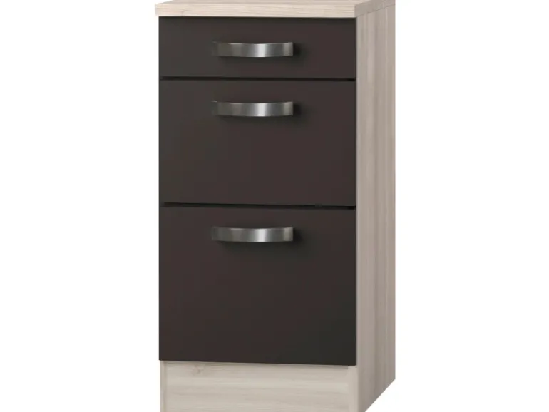 Durch die drei Auszüge, bietet dieser Schrank komfortabel zu erreichende Stauflächen für Ihre Küche. Der Schrank gehört zu der Serie Faro220 von OPTIkult und lässt sich mit weiteren Schränken dieser Serie hervorragend kombinieren. Dadurch ist ein individuelles Gestalten Ihrer Küche leichtgemacht.