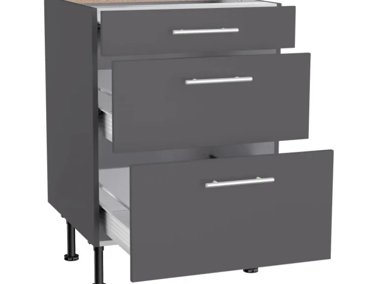 Durch die drei Auszüge und die Breite von 60 cm, bietet dieser Schrank massenhaft komfortabel nutzbare Stauflächen für Ihre Küche. Der Schrank gehört zu der Serie Ingvar420 von OPTIkomfort und lässt sich mit weiteren Schränken dieser Serie hervorragend kombinieren. Dadurch ist ein individuelles Gestalten Ihrer Küche leichtgemacht.