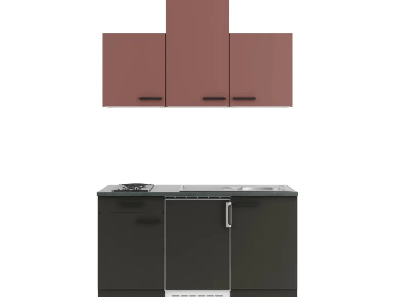 Die Serie Nizza407/Madrid420 ist mit der Kombination aus Frontfarbe in Rostrot / Anthrazit Matt mit Korpus und Arbeitsplatte in Anthrazit Matt perfekt abgestimmt. Metallgriffe in Schwarz Matt runden den Look ab und machen Ihre Küche zu einem echten Hingucker.