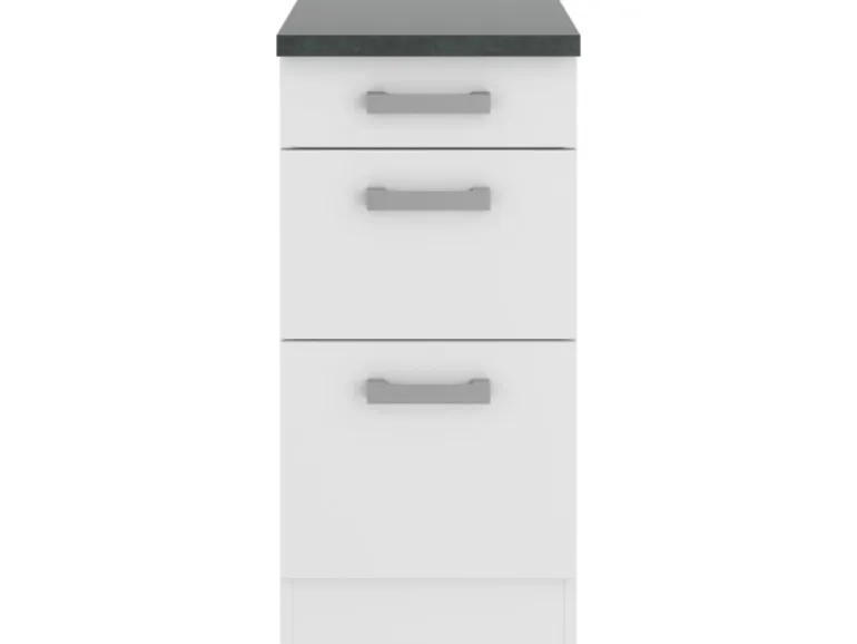 Die Serie Oslo214 ist mit der Kombination aus Frontfarbe in Feinstruktur Weiß , Korpus in Weißund Arbeitsplatte in Anthrazitperfekt abgestimmt. Griffe in Alu-Optik runden den Look ab und machen Ihre Küche zu einem echten Hingucker.