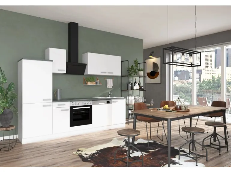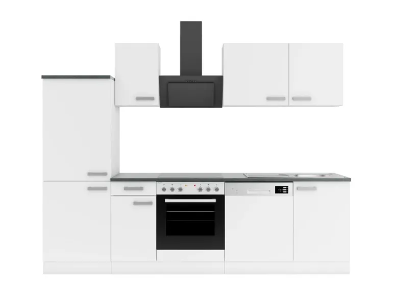 Die Serie Oslo214 ist mit der Kombination aus Frontfarbe in Feinstruktur Weiß mit Korpus in Weiß und Arbeitsplatte in Anthrazit perfekt abgestimmt. Griffe in Alu-Optik runden den Look ab und machen Ihre Küche zu einem echten Hingucker.