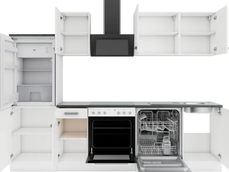 Die Küchenzeile gehört zu der Serie Oslo214 aus dem Programm OPTIkompakt. In dem Programm OPTIkompakt sind Küchenzeilen in verschiedenen Ausführungen und Breiten vorhanden. Hier ist für jeden Haushalt das richtige Modell dabei.