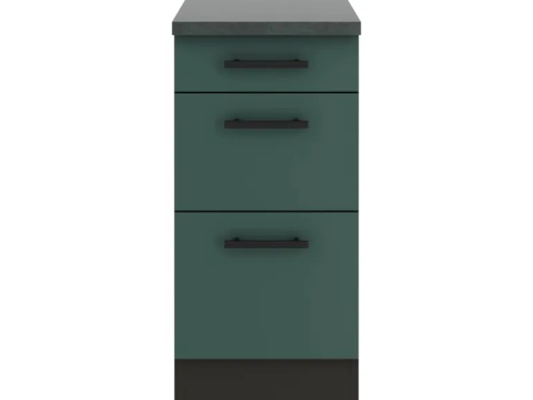 Die Serie Verona405 ist mit der Kombination aus Frontfarbe in Steingrün , Korpus in Anthrazit Mattund Arbeitsplatte in Anthrazitperfekt abgestimmt. Metallgriffe in Schwarz Matt runden den Look ab und machen Ihre Küche zu einem echten Hingucker.