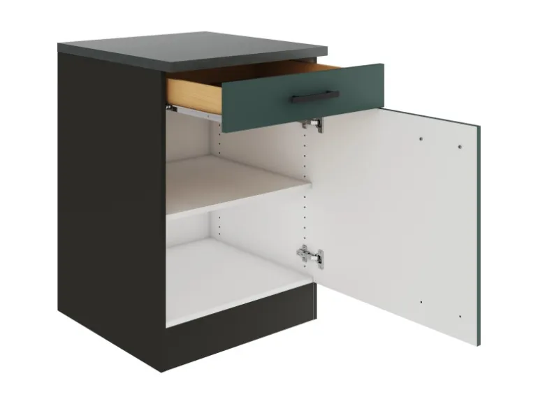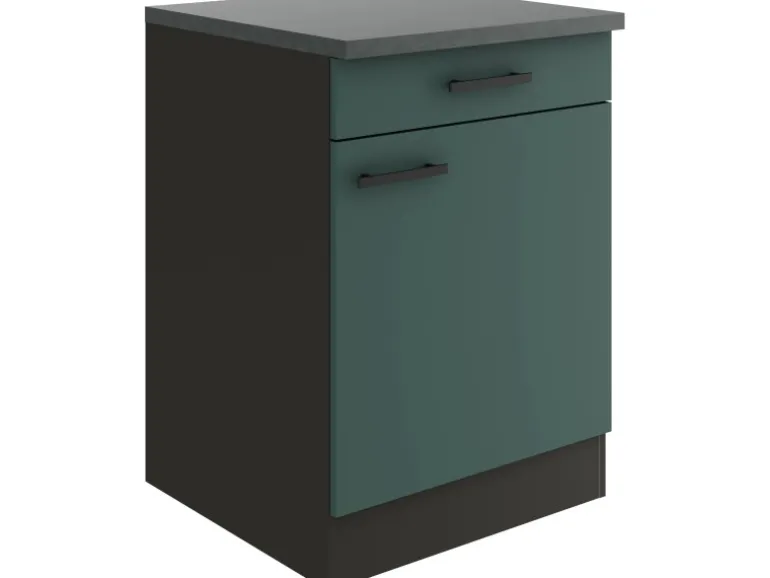 Die Serie Verona405 ist mit der Kombination aus Frontfarbe in Steingrün , Korpus in Anthrazit Mattund Arbeitsplatte in Anthrazitperfekt abgestimmt. Metallgriffe in Schwarz Matt runden den Look ab und machen Ihre Küche zu einem echten Hingucker.