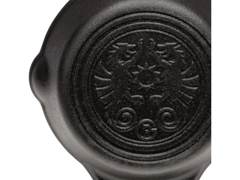 Die Gusseisenpfanne hat zwei gegenüberliegende Henkel, sodass du sie sicher tragen und auch aufhängen kannst. Dadurch passt sie auch gut in den Backofen oder auf den Grill. Die Pfanne gibt es aber auch mit einem klassischem Stil zum transportieren. Sie ist in sechs Größen erhältlich und eignet sich damit für Gerichte und Portionen jeder Größe.