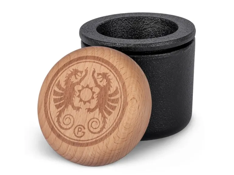 Der Gusseisen-Mörser ermöglicht alle Mahlgrade. Für grobe Ergebnisse, wie bei schwarzem Pfeffer, bleibt die Textur erhalten und verstärkt den Geschmack von Lagerfeuergerichten. Für feinere Ergebnisse zerstoßen Sie die Gewürze zu Pulver, begleitet von einem intensiven Duft.