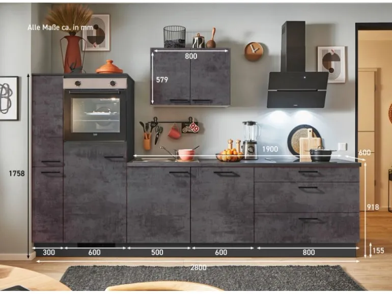 Küchenzeile 280 cm bestehend aus (B/H/T):