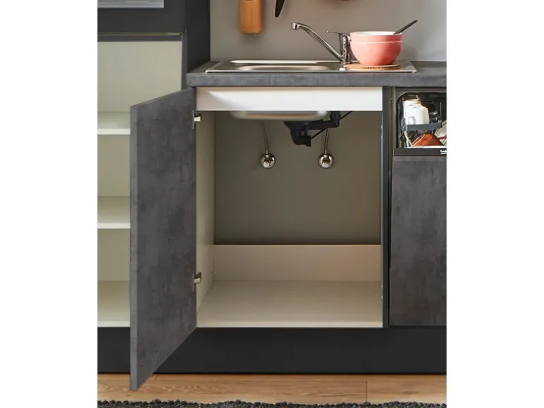 Unsere Küchen sind sorgfältig gefertigt mit Materialien von hoher Wertigkeit, die nicht nur kratzfest, sondern auch abriebfest sind. Sowohl die Front als auch der Korpus sind beidseitig mit Melamin beschichtet. Ein praktischer Vollauszug ermöglicht bequemen Zugang zu Stauraum, während der geräuscharme Lauf mit Softclose-Technik zusätzlichen Komfort bietet. Die höhenverstellbaren Sockelfüße ermöglichen es, die Küche optimal auszurichten und so individuell an die Bedürfnisse anzupassen.