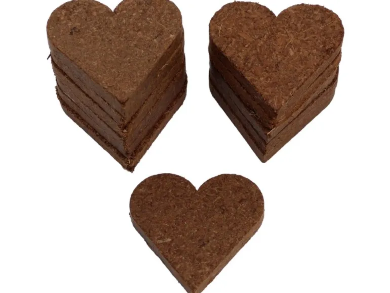 Kokos Quelltabletten in Herzform für die Anzucht von Pflanzen sind praktisch, lagerfähig und haben ein Quellvolumen von 250 ml. In wenigen Minuten haben Sie gebrauchsfertige Kokoserde.