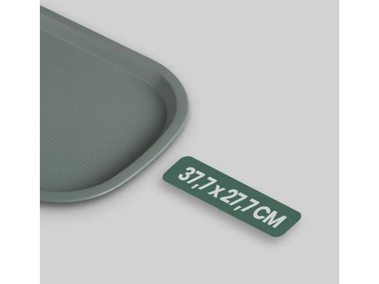 Mit einer idealen Größe von 37,7 x 27,7 cm bietet dieses Tablett genügend Platz für unterschiedliche Anwendungen, sei es in der Gastronomie, im Haushalt oder bei Events. Die kompakte und dennoch großzügige Oberfläche ermöglicht das komfortable Servieren von Speisen und Getränken, während die Kanten das Abrutschen von Gegenständen verhindern. Ob im Restaurantbetrieb, bei Catering-Services oder in der Küche zu Hause, das Tablett bietet genug Platz, um Teller, Gläser und Besteck sicher zu transportieren.