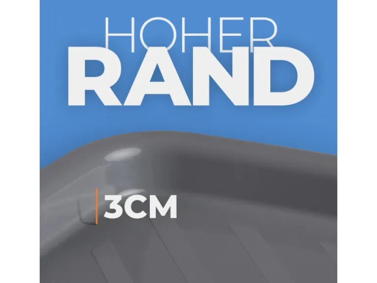 Hoher Rand von 3 cm verhindert Verrutschen und Verschütten.
