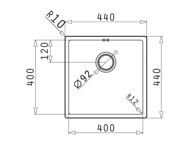 Beckenmaß: 40 cm x 40 cm x 20 cm