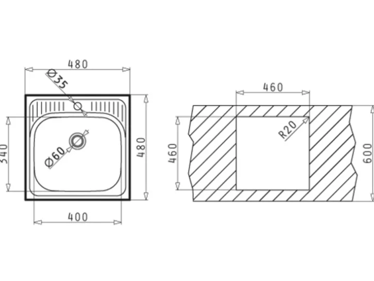 Spülenmaß: 48 cm x 48 cm x 15 cm