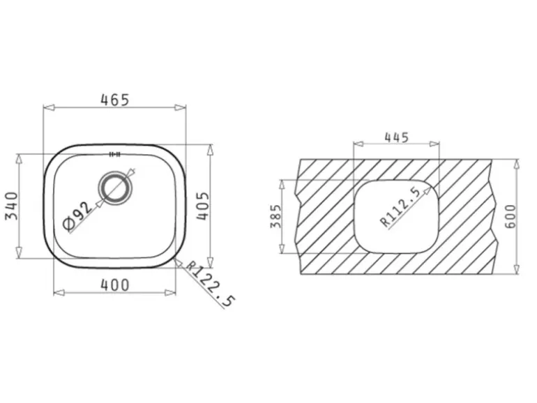 Spülenmaß: 46,5 cm x 40,5 cm x 15 cm