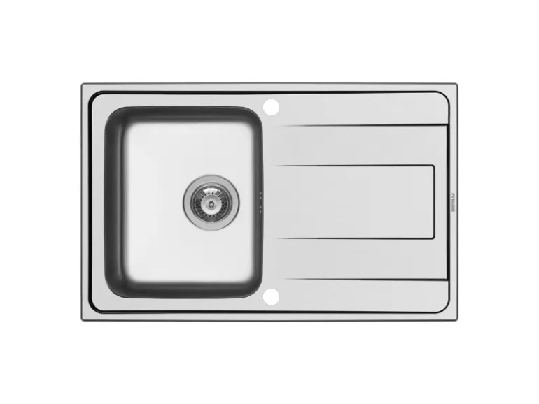 Das 19 cm tiefe Becken bietet ausreichend Platz, um auch größere Teile bequem zu reinigen. Dank der kompakten Außenmaße und der kleinen Abtropffläche nimmt die Spüle nur wenig Platz auf der Arbeitsplatte ein und passt in Unterschränke ab einer Breite von 45 cm.