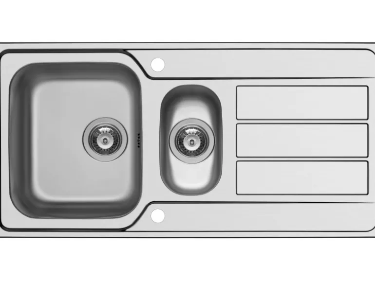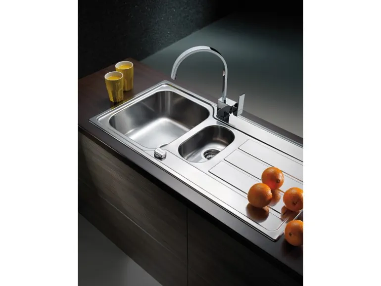 Die Pyramis Einbauspüle Athena 1 1/2B B 1D aus Edelstahl ist ein attraktiver Blickfang in jeder Küche. Gefertigt wird dieses Modell aus hochwertigem Edelstahl und bietet damit Vorteile wie Korrosionsbeständigkeit und Hitzebeständigkeit. Aufgrund der perfekten Hygieneeigenschaften können Lebensmittel direkt mit dieser Spüle in Kontakt kommen. Die Montage des Modells ist denkbar einfach. Durch die bereits aufgeschäumte Dichtung unter der Spüle können keine Flüssigkeiten in die Arbeitsplatte dringen. Die Spüle ist ausgestattet mit einem 92 mm (3 5/8″) Drehexcenter und passt in Unterschränke ab 60 cm Breite. Das Restebecken verfügt über ein manuelles 92 mm (3 1/2″) Siebkorbventil. Das Modell hat 1+1 Hahnlöcher und kann reversibel eingebaut werden. Im Set enthalten sind bereits die Befestigungsklammern sowie die passende Ab- und Überlaufgarnitur.