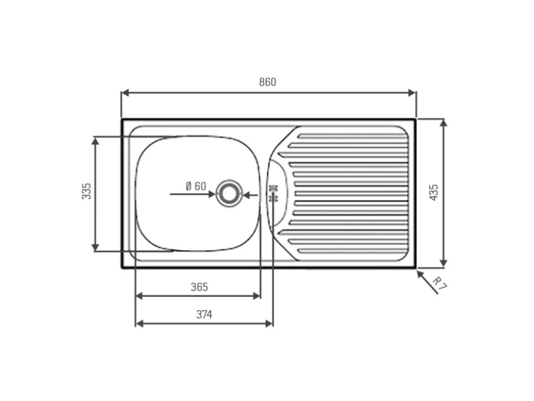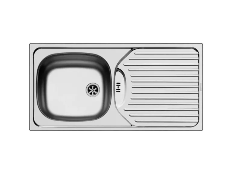 Die Montage des Modells ist denkbar einfach. Die Spüle ist ausgestattet mit einem 60 mm (2 23/64″) Stopfenventil und passt somit auch in Unterschränke ab 45 cm. Das Modell kann reversibel eingebaut werden und beinhaltet im Set die Befestigungsklammern sowie die passende Ab- und Überlaufgarnitur.