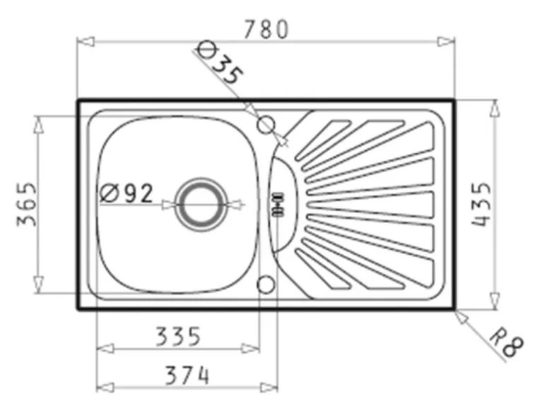 Spülenmaß: 78 cm x 43,5 cm x 15 cm