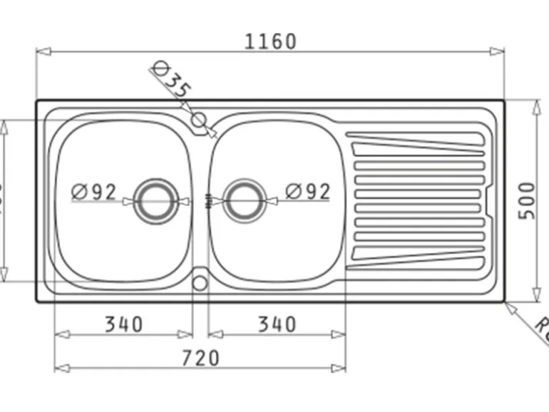 Spülenmaß: 116 cm x 50 cm x 15 cm