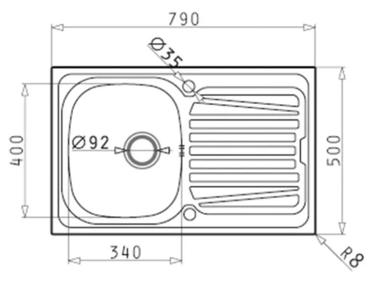 Spülenmaß: 79 cm x 50 cm x 15 cm