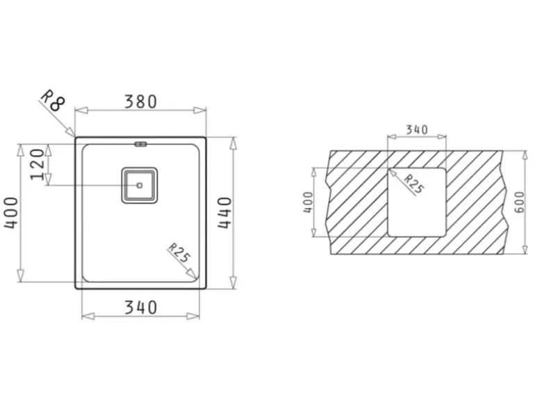 Spülenmaß: 38 cm x 44 cm x 20 cm