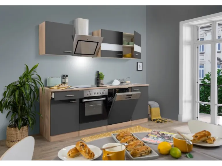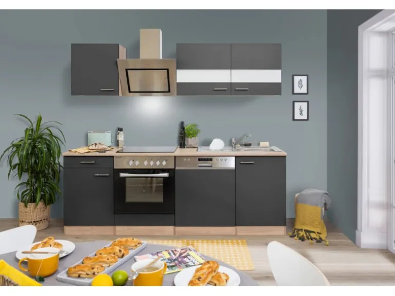 Die Respekta Küchenzeile ist mit einer Breite von 220 cm perfekt für kleinere sowie mittlere Räume und eignet sich ideal auch für Einsteiger und Singlehaushalte. Bestehend aus unter anderem einem Unterschrank mit Schublade sowie Oberschränken bietet die Küche viel Stauraum für all Ihr Geschirr, Gläser und Küchenzubehör. Die mit einer komfortablen Soft-Close Funktion ausgestatteten Türen schließen zudem sanft und leise.