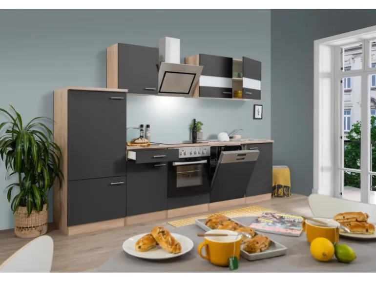 Die Respekta Küchenzeile besteht aus (HxBxT):
