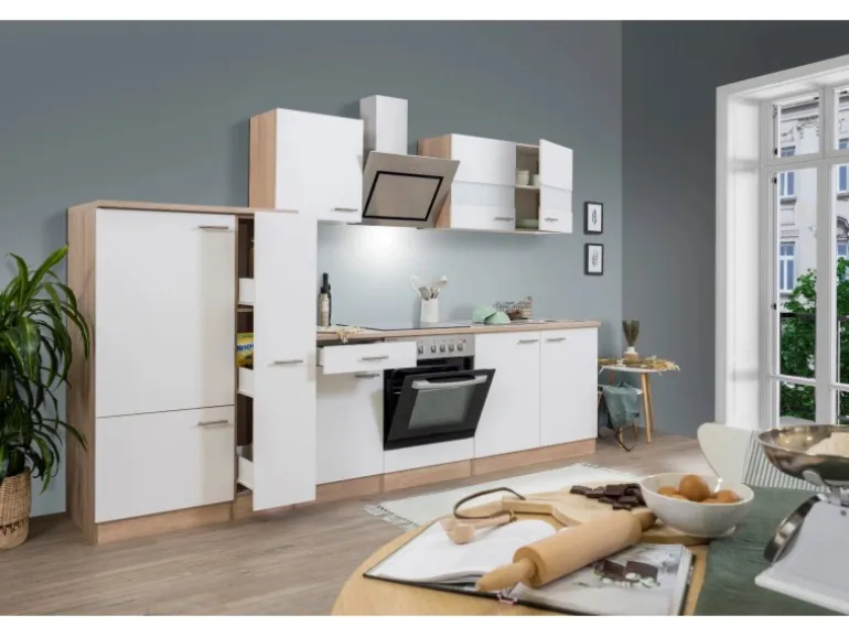 Die Respekta Küchenzeile besteht aus (HxBxT):