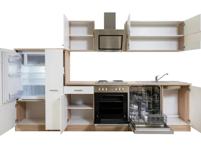Die Respekta Küchenzeile besteht aus (HxBxT):