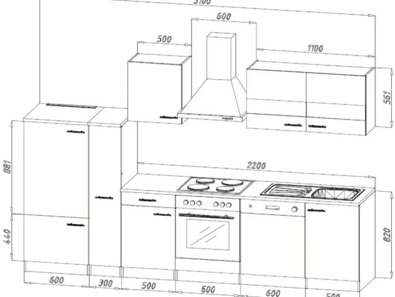 Die Respekta Küchenzeile KB310WWBSC besteht aus (HxBxT):