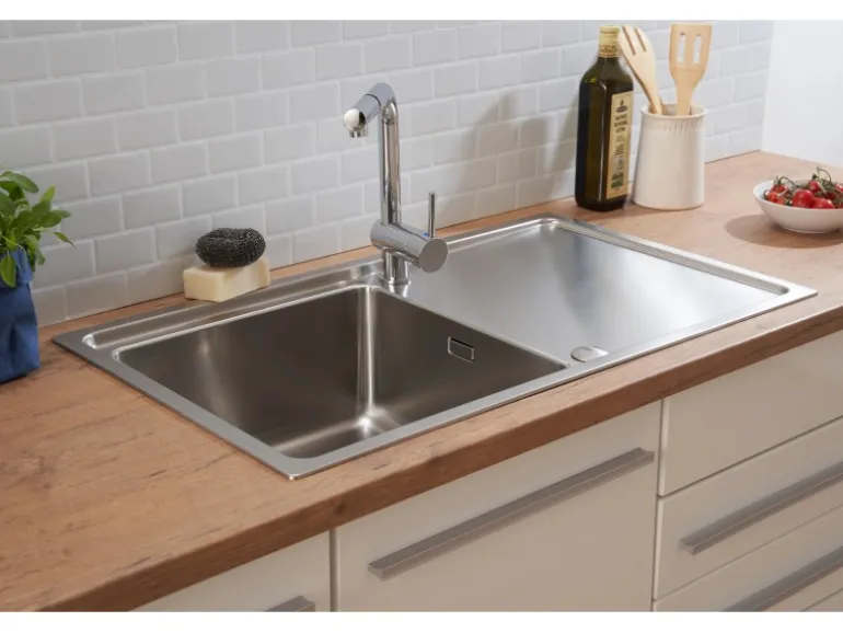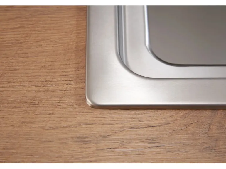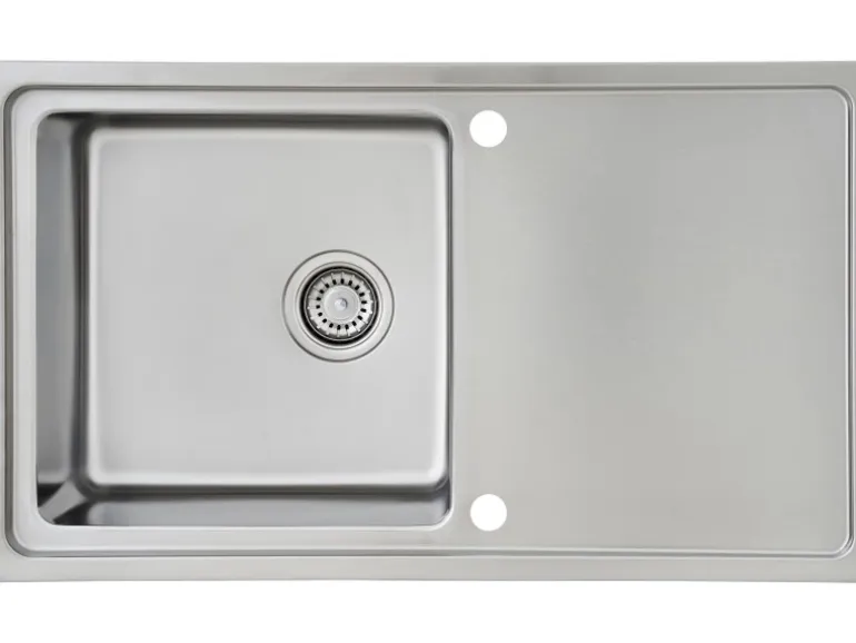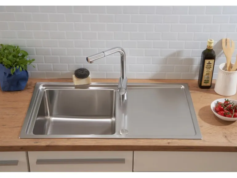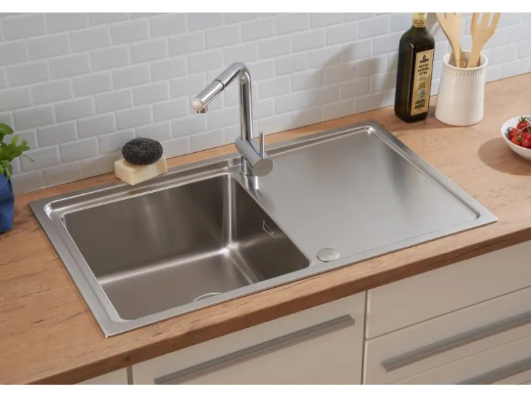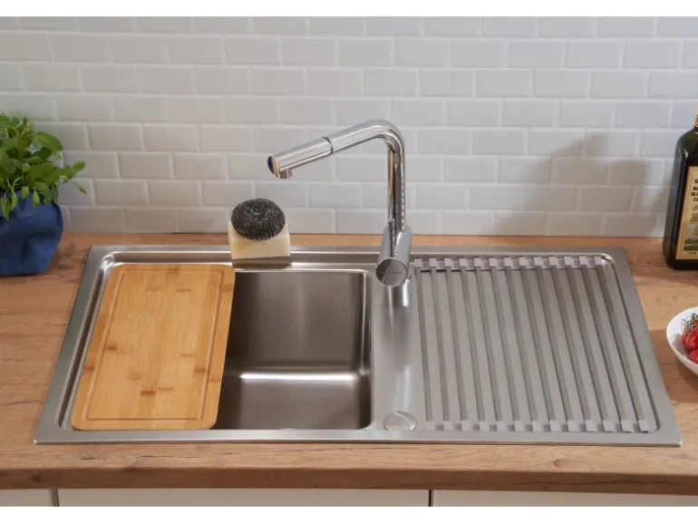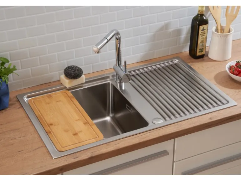 + Edelstahlspüle mit 1 Becken und Abtropffläche