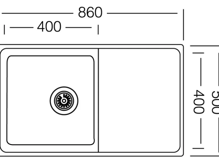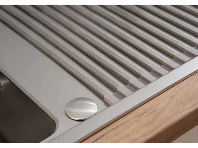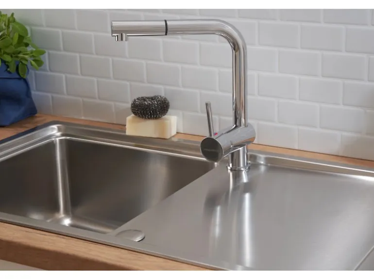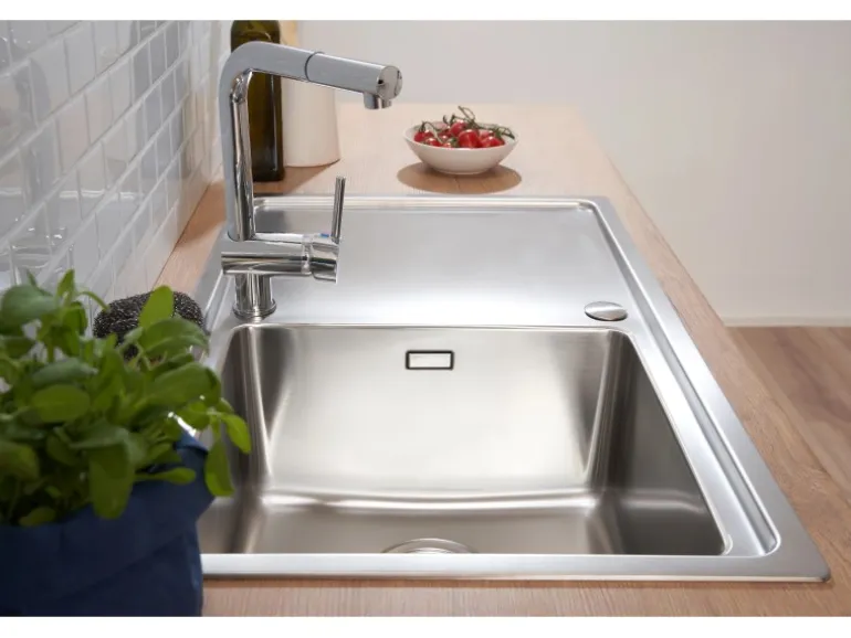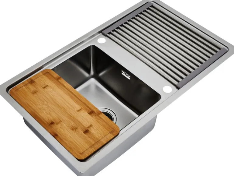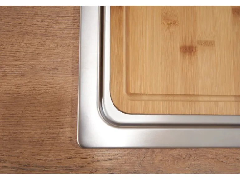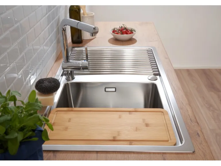 + Edelstahlspüle mit 1 Becken und Abtropffläche